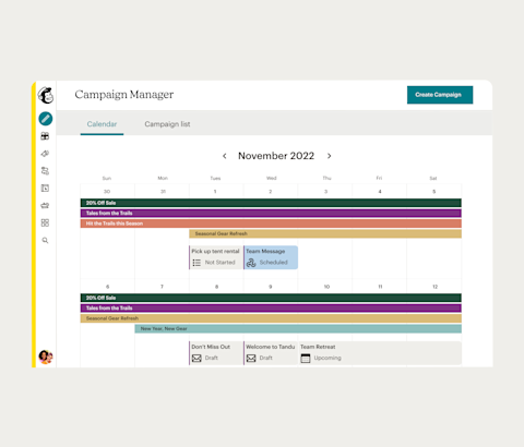 Mailchimp’s Campaign Manager lets you build campaigns across multiple channels, and manage them all from one unified platform.