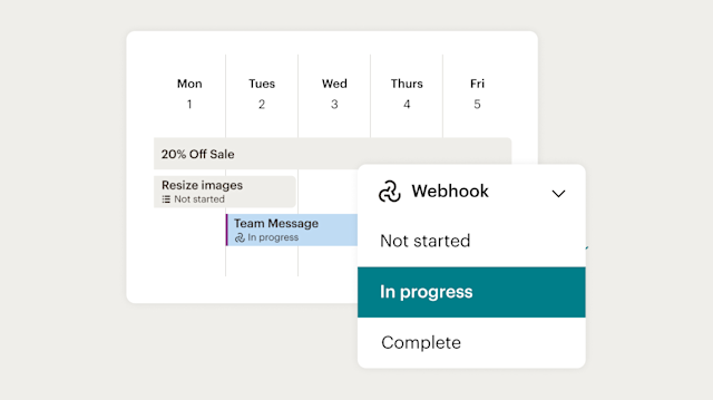 Webhooks allow you to schedule or automate actions using your favorite tools—so you can coordinate customer interactions, campaign launches, internal team updates and more, all from Mailchimp.