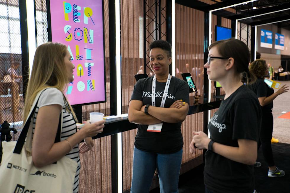 When we talked about making a splash at one of the world’s biggest e-commerce trade shows, we wanted to go big, of course, but we also wanted to stay true to who we are as a company. So instead of hiring a trade show booth designer, we chose 2 film production designers, Michael Bricker and Anthony Lavadera. Their job? To design a trade show “set” for Mailchimp. We wanted our booth (set!) to represent the unique culture of Mailchimp, but also the ways we’ve grown in the last few years.