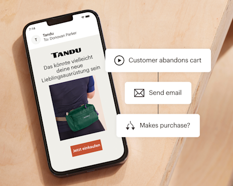 • Ja, Mailchimp bietet dir Marketingautomatisierungen, mit denen du deine Customer Journeys personalisieren, Trigger-basierte E‑Mails versenden und vieles mehr erreichen kannst. Du kannst deinen Kunden auch automatisierte Nachrichten senden, die speziell auf ihre Interaktionen mit deinem Unternehmen zugeschnitten sind. Dazu musst du nicht einmal online sein. Du kannst daher mehr E‑Mails zum optimalen Zeitpunkt versenden und dich auf andere wichtige Dinge konzentrieren. Ob du einem Kontakt mit einer E-Mail für seine Registrierung oder den Kauf eines Produkts danken möchtest: Mit den richtigen Tools kannst du den Kontakt leichter aufrechterhalten.