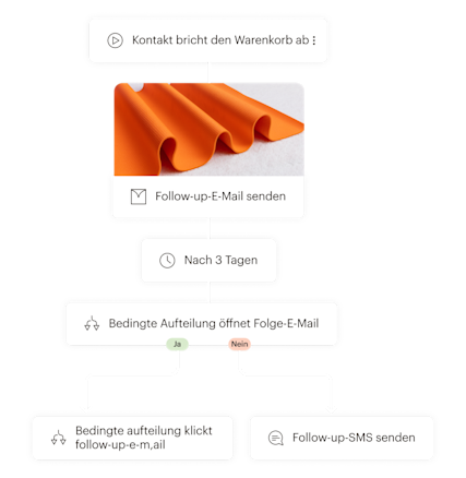 • Unter automatisiertem Marketing versteht man den Einsatz von Technologien mit dem Zweck, die Erstellung von manuellen E‑Mails zu reduzieren. Anstatt also jedes Mal eine E‑Mail zu schreiben, wenn jemand einen Kaufvorgang abbricht oder einen Kauf tätigt, kannst du dies von unserem System erledigen lassen. So kannst du deiner bestehenden und potenziellen Kundschaft E‑Mails senden, die ihrer Position auf der Customer Journey entsprechen.