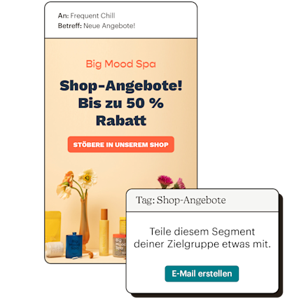 Wenn du deinen Shopify-Store mit Mailchimp verbindest, kannst du ganz einfach benutzerdefinierte Tags hinzufügen, um deine Kontakte zu strukturieren und segmentierte Zielgruppen zu erstellen. Auf diese Weise stellst du sicher, dass deine Kontakte nur Inhalte erhalten, die sie tatsächlich sehen wollen.