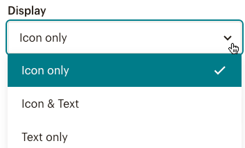 - Klicke auf das Dropdown-Menü Anzeige und wähle dort unter Nur Symbol_, _Symbol und Text oder Nur Text. Ausgehend von deiner Wahl gibt es verschiedene Optionen für Stil, Größe, Ausrichtung und Layout von Symbolen.
