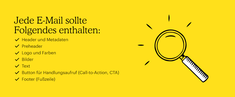 Denk daran, deine E-Mails nicht mit visuellen Elementen zu überladen, was die Lesbarkeit erschwert. Halte es einfach, aber peppe das Ganze ggf. ein wenig auf.