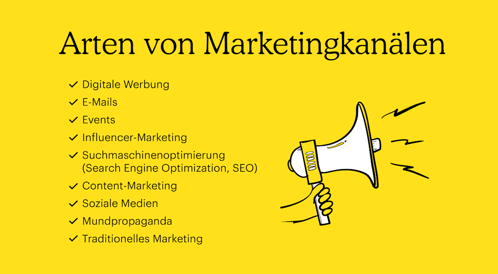 Ein Marketingkanal ist ein Medium, mit dem du für dein Unternehmen wirbst. Online-Marketingkanäle umfassen Methoden wie digitale Werbung, SEO, Influencer-Marketing, E-Mail und mehr. Jeder Kanal hat seine eigenen eindeutigen Vorteile und Zwecke.