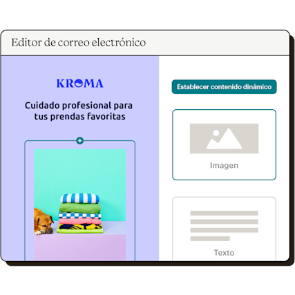 Nuestra función de email marketing dinámico te permite crear más correos electrónicos personalizados en menos tiempo, para que puedas centrarte en otras tareas importantes. Hay diferentes tipos de bloques de contenido de correo electrónico que admiten contenido dinámico, lo que te permite personalizar cada correo electrónico como quieras. Además, esta función única es fácil de usar y no requiere conocimientos de programación.