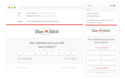 Delighted también te permite integrar sin problemas las encuestas de Delighted en tus correos electrónicos de Mailchimp y recopilar valiosos comentarios de los clientes en el momento. La incrustación puede mejorar las tasas de respuesta y optimizar la experiencia del usuario.