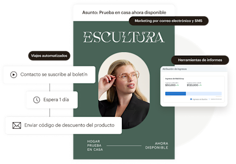 - ROI 30 veces mayor : según los ingresos de e-commerce atribuibles a las campañas de agosto de 2024 a agosto de 2025. El cálculo del ROI requiere una tienda de e-commerce que esté vinculada a una cuenta de Mailchimp. Los resultados varían.