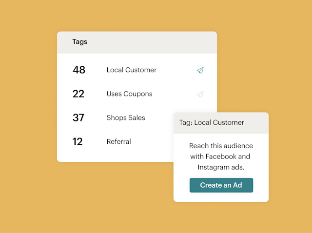 With all your contact data in one place, it’s easy to use Mailchimp’s segmentation tools to find exactly who you need to talk to. Segments, tags, and groups work in slightly different ways to help you create your own organizational structure and keep track of everything you learn about contacts as you grow.