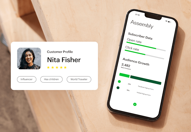 Whether you’re starting from scratch with CRM software or bringing an existing audience into Mailchimp, connecting your favorite tools and keeping all your contact data in Mailchimp's marketing CRM tool helps you stay organized and improve your marketing. Best of all, our audience dashboard will help you get to know your audience at a glance, visually showing you segments within your audience data that you can send targeted campaigns to with just a few clicks.