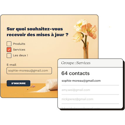 Grâce à l'ajout de champs personnalisés dans vos formulaires d'inscription Mailchimp, vous pouvez interroger vos contacts au sujet de leurs préférences et les organiser par groupes d'intérêt spécifiques au sein de votre audience.