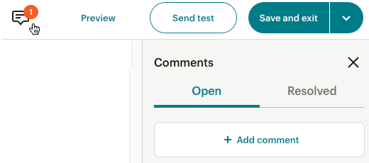 Dans le concepteur d'e-mail, affichez vos messages dans le panneau Commentaires. Nous afficherons un badge avec le nombre de messages que vous avez reçus de votre e-mail de test.