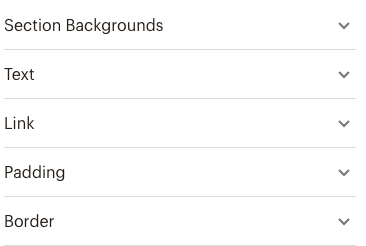 Lorsque vous accédez aux options de mise en forme d’une section, vous trouverez différentes sections que vous pourrez personnaliser. Il s’agit généralement des couleurs d’arrière-plan, des tailles de police et du style des liens. Certaines sections disposent d’options supplémentaires, telles que les bordures et le remplissage.