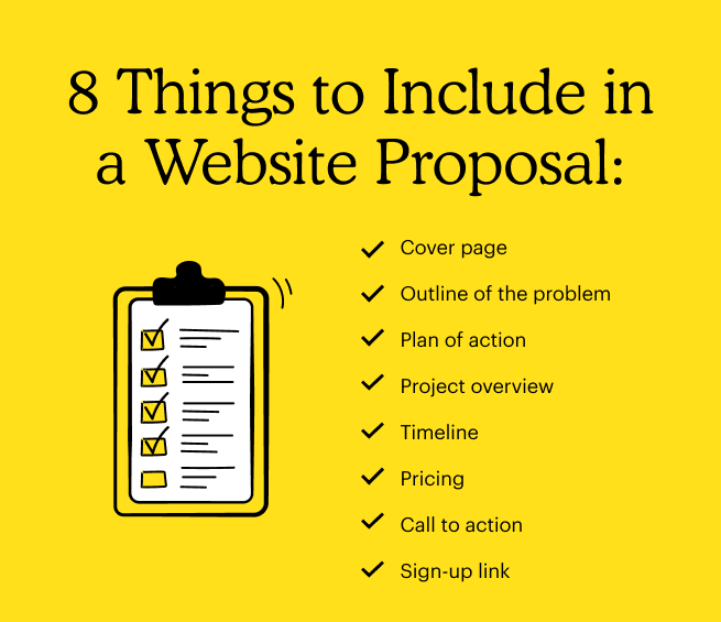 A great call to action will let clients know why your services are fantastic and why they have to act now to solve their problems. As clients read through your website design proposal, they should feel confident enough to take action when they arrive at the call to action section.