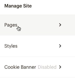 In the Manage Site menu, click Pages.