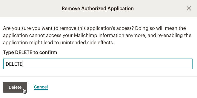 - In the pop-up modal, type DELETE, and then click Delete to confirm your action.