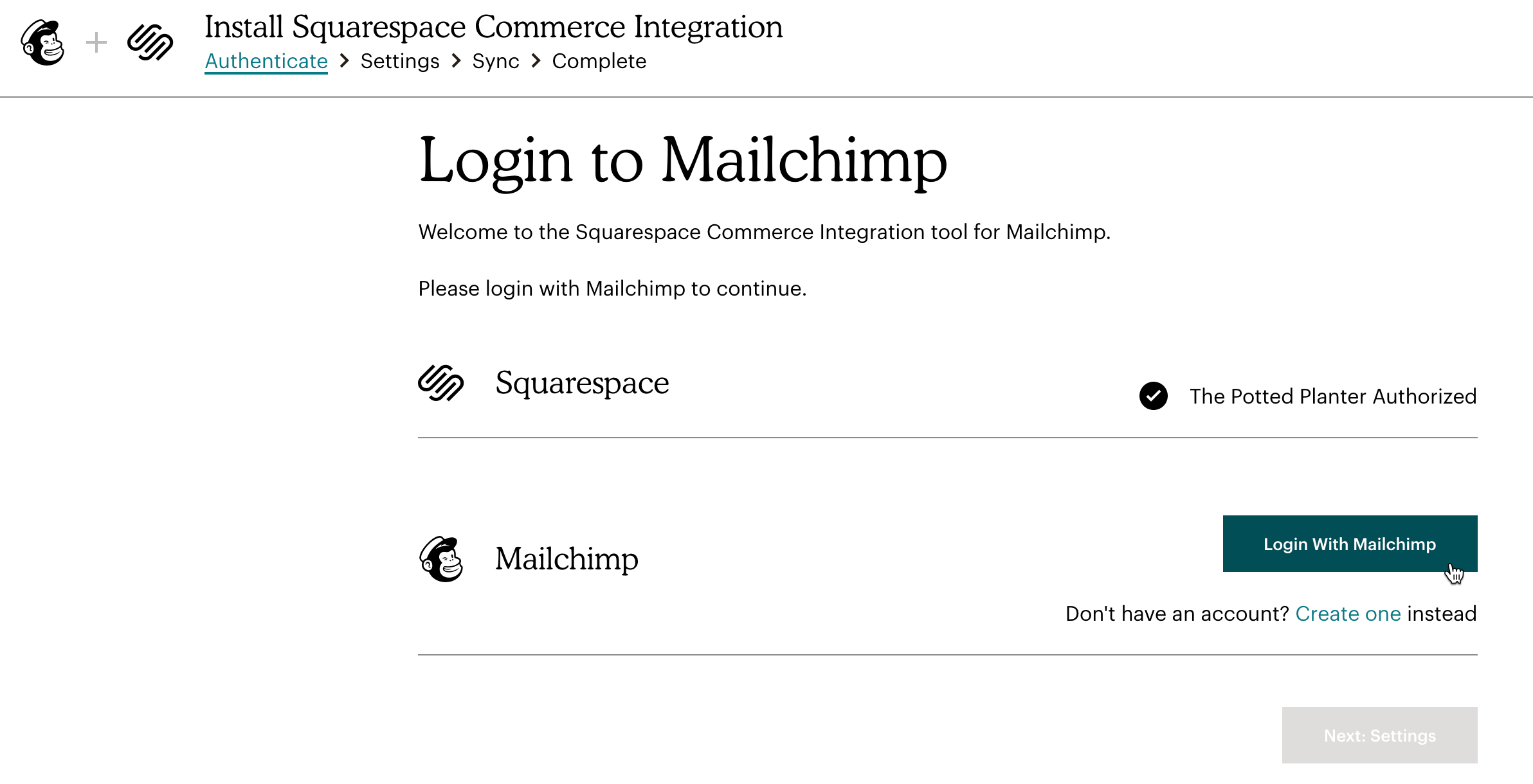 - Choose the Squarespace store you want to sync to Mailchimp.