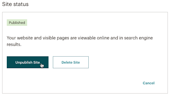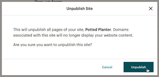 In the Unpublish Website pop-up modal, click Unpublish.