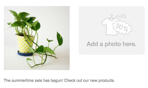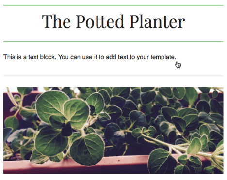 The default image in this example says, “Add a photo here.” Replace it with your own branded image, or remove the image content block.