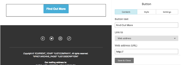 Some templates have default buttons that you’ll need to customize with your own URLs. Make sure all buttons in your email connect to sites relevant to your brand.