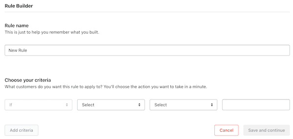 - Enter a rule name and choose the criteria you want to apply to your customers.