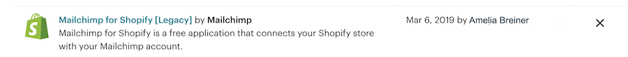 If you’re not sure whether you’re using Mailchimp for Shopify [Legacy], you can check your existing integrations. Scroll to Authorized applications and look for Mailchimp for Shopify [Legacy].