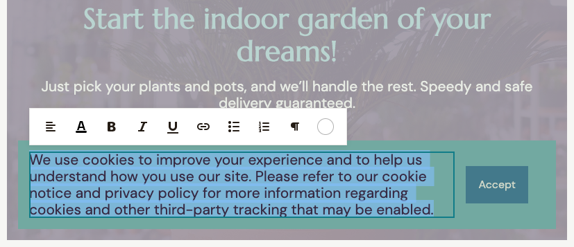 Excellent work! People who visit your website for the first time will see a notification banner. The notification banner settings you choose will apply to every page on your website.