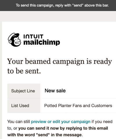To send your content as-is, reply to the confirmation email with the word Send, and we'll send it to your audience.