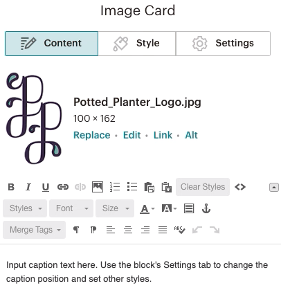 Use Mailchimp's Image + Text block to add up to two captioned images to your email or page. Learn how to add, edit, and style Image + Text blocks.