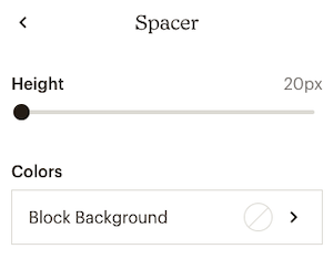 - Click a Spacer block, or click and drag a Spacer block into your layout from the side panel.