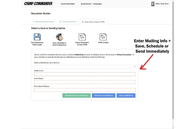 Save, Schedule, Send to a Mailchimp Newsletter or Export the Raw HTML