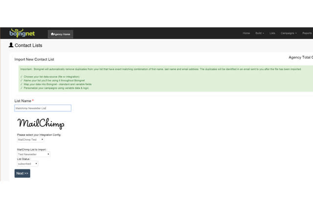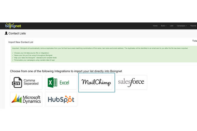 Import your Mailchimp list directly into Boingnet easily using your Mailchimp API Key