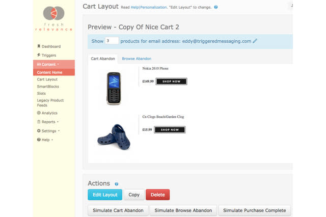 Fresh Relevance collects and leverages real-time web behavioral data and web content to help you increase buyer engagement in different ways with features that include: