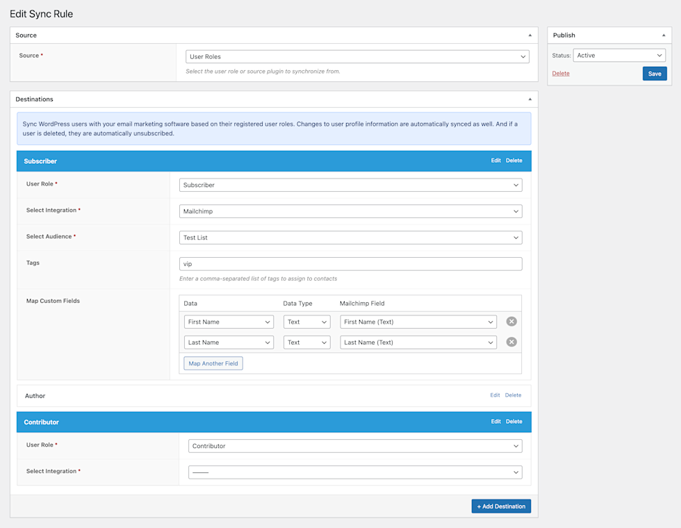 After users register on your WordPress site, FuseWP automatically subscribes them to your Mailchimp list based on their user roles.