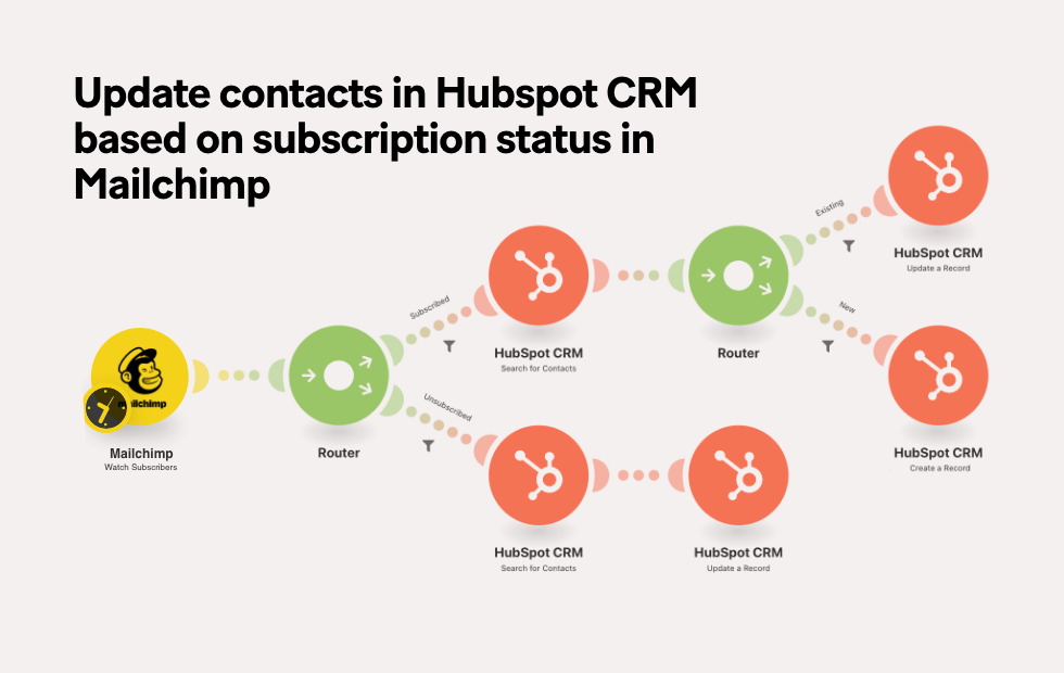 - Create or update a contact and create a deal in HubSpot CRM from a new Mailchimp subscriber
