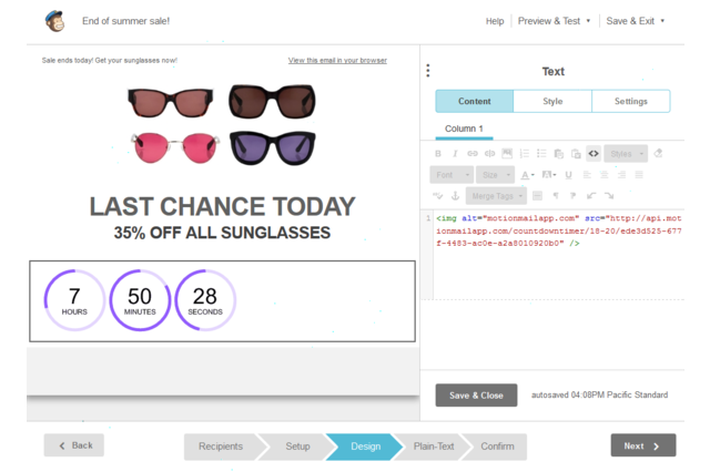 Adding a countdown timer to your email is simple. See the Additional Information below for a step by step blog post that describes the process, and sign up for a MotionMail account today to start using them in your campaigns.