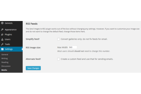 The plugin optionally adds a new email friendly image size to WordPress. Any large images uploaded to your site with this plugin activated will automatically have a new copy generated which is 560 pixels wide. If this image exists, it will be sent to your RSS feed, so we avoid the issue of overlarge images going out in email and your emails looking like monkey poo.
