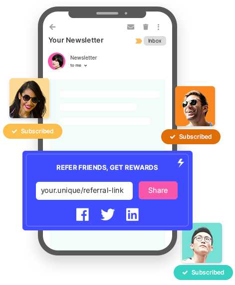 With SparkLoop it's easy to reward your audience for sharing your newsletter with their friends. So you grow faster, improve subscriber engagement, and spend less money and time on growth.