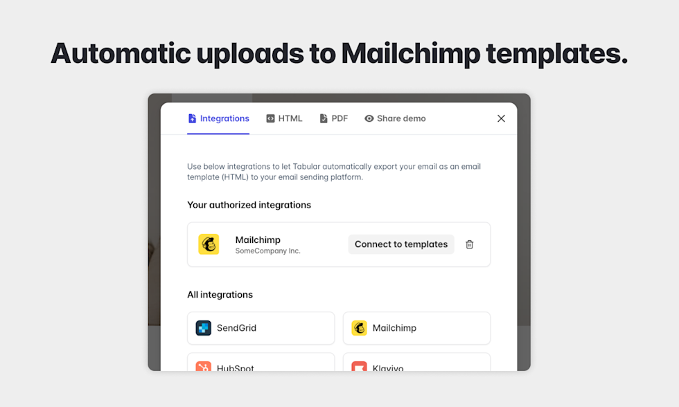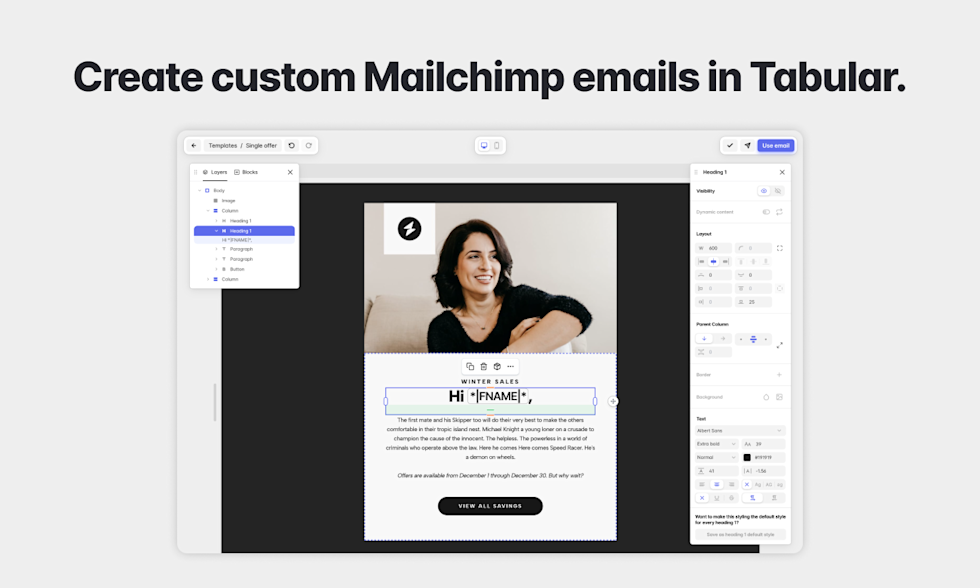 Tabular email templates for Mailchimp Mailchimp integration page Tabular - email template builder