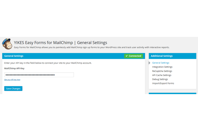 Easy Forms for Mailchimp allows you to add Mailchimp sign up forms to your WordPress site. You can add forms to posts, pages, sidebars and other widgetized areas. Your Mailchimp API Key connects your site to your Mailchimp account and pulls in all of your Mailchimp list information.