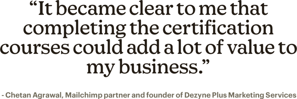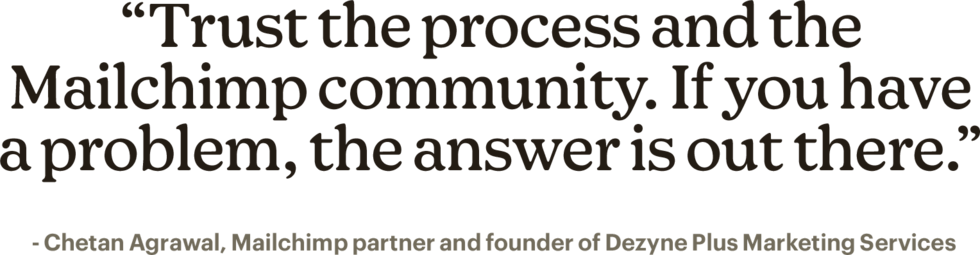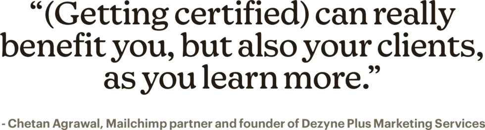 Devo congratularmi con il team che ha creato la Mailchimp Academy, perché mi ha aiutato a sviluppare le mie conoscenze moltissimo. Imparare di più può davvero essere vantaggioso per te e anche per i tuoi clienti.