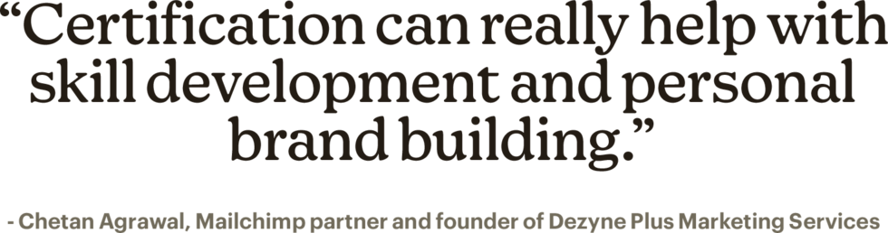 Completare la certificazione del corso Mailchimp Foundations è stato un vero un risultato. C’era una domanda che mi ha quasi spinto a rinunciare, ma ho fatto una pausa e ho ripreso il giorno successivo. Questa sfida ha instillato un vero senso di vittoria in me.
