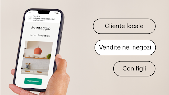 Con tutti i dati sui contatti organizzati nel CRM Mailchimp potrai usare tali informazioni per garantire che le tue attività di marketing siano rilevanti per i singoli clienti attraverso i vari canali. Usa gli strumenti di targeting comportamentale e personalizzazione di Mailchimp per realizzare campagne che sembrino conversazioni individuali in tempo reale, inviando il messaggio giusto al momento giusto e offrendo consigli personalizzati sui prodotti.