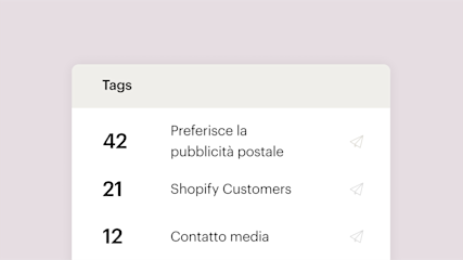 Con tutti i dati sui contatti in un unico posto, usare gli strumenti di segmentazione di Mailchimp per sapere a chi rivolgersi è facilissimo. Segmenti, tag e gruppi sono solo alcuni dei modi per aiutarti a creare la tua struttura organizzativa e monitorare le informazioni sui contatti mentre la tua attività cresce.