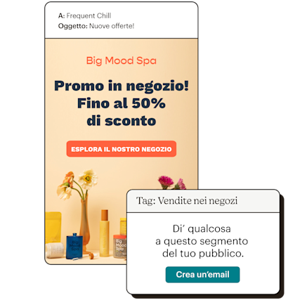 Quando colleghi il tuo negozio Shopify a Mailchimp, puoi aggiungere facilmente dei tag personalizzati per organizzare i tuoi contatti e creare segmenti di pubblico. In questo modo, puoi assicurarti che i tuoi contatti ricevano il contenuto che desiderano effettivamente vedere.