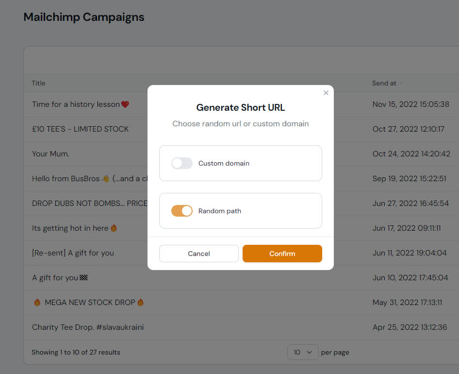 Il nostro strumento si integra perfettamente con Mailchimp, consentendo agli utenti di migliorare i loro sforzi di email marketing con la possibilità di creare brevi link delle tue newsletter da condividere sui social con 1 clic di un pulsante!