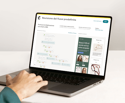 Oltre alla creazione, riceverai consigli sugli orari di invio, miglioramenti dei contenuti e suggerimenti pre-invio che possono migliorare le prestazioni, oltre a flussi di marketing predefiniti che ti consentono di personalizzare i messaggi non limitandoti semplicemente a chiamare il destinatario per nome.