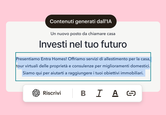 • Cerca una generazione di contenuti che comprenda davvero la voce e lo stile del tuo brand. L'AI dovrebbe essere in grado di creare testi e design che corrispondano ai tuoi materiali esistenti, anziché a template generici.