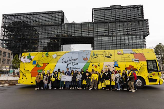 Participants kicked of the day with breakfast at the newly opened Intuit Atlanta office (home to Mailchimp), before boarding a bus lovingly wrapped in the Give Where You Live branding to embark on a jam-packed day of giving back.