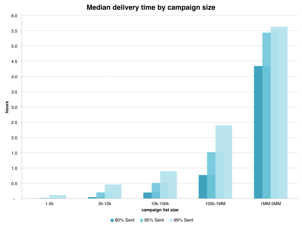 Our sending infrastructure is designed to turn large campaigns into smaller “payloads” to get them out the door much faster. When you click Send in the Campaign Builder, you’re actually telling Mailchimp to start biting off parts of your campaign. As each payload is created, it’s immediately routed to our Mail Transfer Agents (MTAs) and queued for delivery. We organize this based on contact ratings, so the most engaged subscribers in your campaign are first in line.